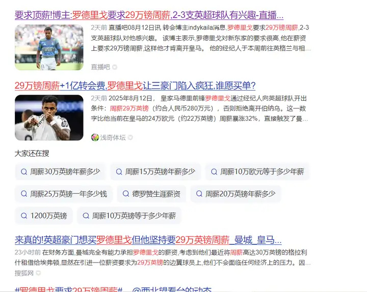 而且罗德里戈这名球员,他也是狮子大开口,对薪资要求还是挺高的,想要29万英镑的周薪,这个消息想必大家也已经知道了,各大平台上也在疯狂转发。